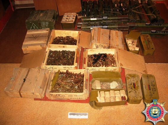 Оперативники уголовного розыска совместно с пограничниками и сотрудниками СБУ обнаружили в одной из многоэтажек Артемовска Донецкой области оружейный арсенал. Об этом сообщила пресс-служба Главного управления МВД в области. Правоохранители обнаружили тайник, отрабатывая информацию о канале поступления нелегального оружия на территорию города. Арсенал был спрятан в подвальном помещении, вход в которое оборудован из квартиры на первом этаже. Из тайника изъяли 27,5 кг тротила, 1,5 кг пластида, 5 артиллерийских снарядов, 6 противотанковых мин, 18 ручных противотанковых гранатометов и 8 снарядов к ним, более 10 тыс. патронов разного калибра. По данному факту открыто уголовное производство по ч. 1 ст. 263 Уголовного кодекса (незаконное обращение с оружием, боевыми припасами и взрывчатыми веществами).