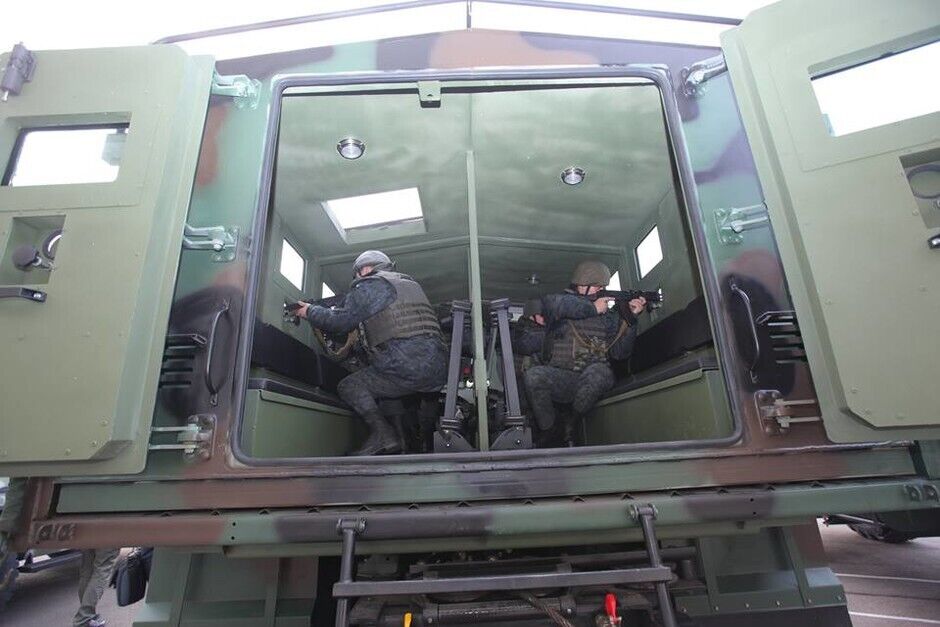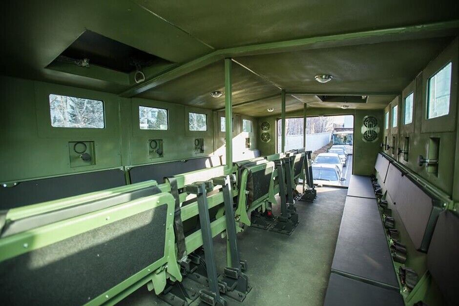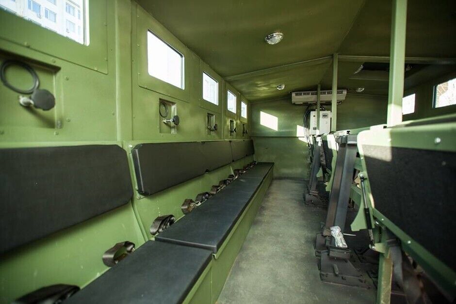 Автомобиль также можно использовать как стационарный блокпост с автономным кондиционированием, отоплением и аварийными люками.