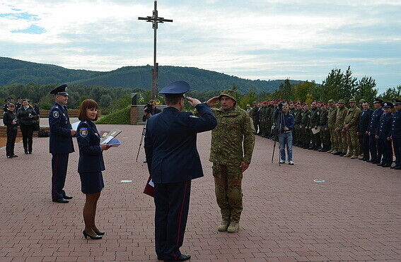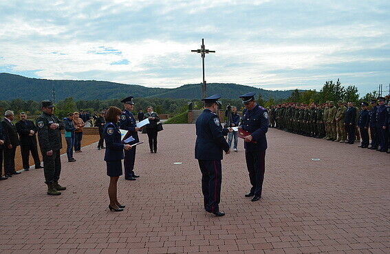 На Красном поле вблизи Хуста состоялось торжественное награждение почетными грамотами Закарпатской областной государственной администрации, областного совета и областного военного комиссариата более сотни закарпатских правоохранителей, которые на протяжении сентября обеспечивали охрану общественного порядка и безопасность мирных жителей на востоке Украины. Об этом сообщает пресс-служба МВД Украины. Защитникам Отечества также вручили денежные премии.