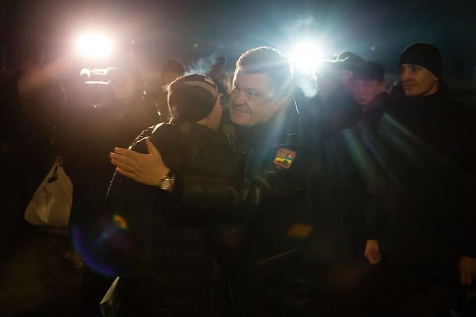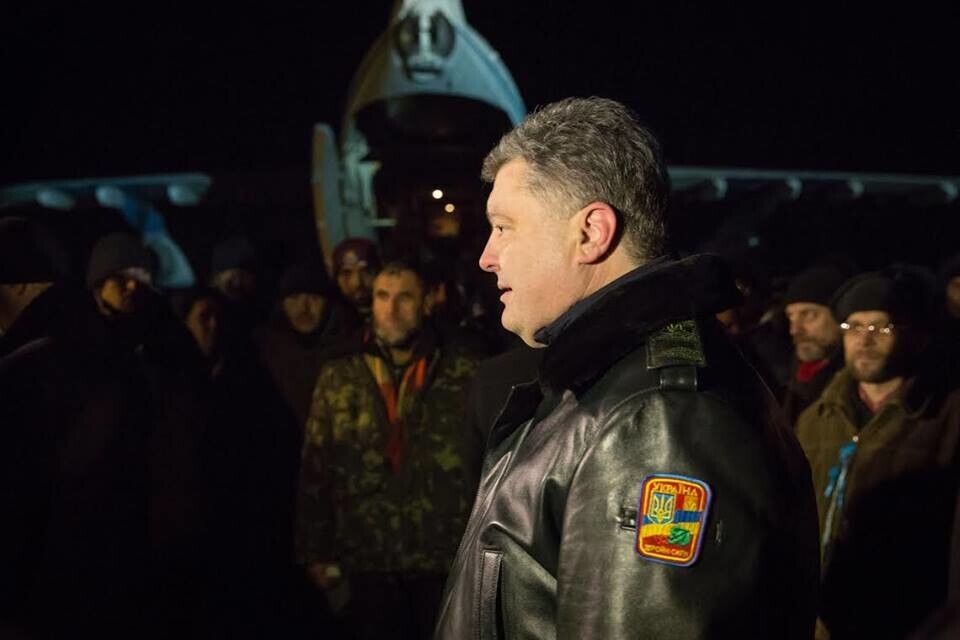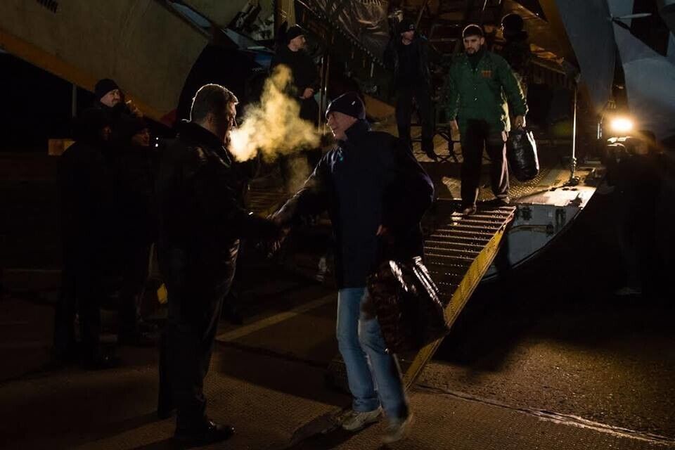 В ночь на 27 декабря президент Украины Петр Порошенко встретил на Васильковском аэродроме под Киевом самолет ВВС Украины, на котором прибыли 145 освобожденных из плена украинских военнослужащих, которых вчера обменяли на 222 боевиков.