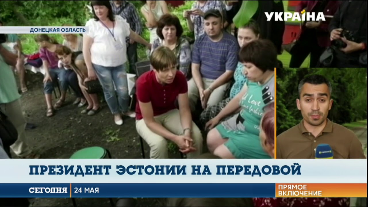 Президент Эстонии Керсти Кальюлайд стала первой главой иностранного государства, который посетил линию разграничения на Донбассе. Об этом 24 мая в Facebook сообщил пресс-центр операции Объединенных сил. Кальюлайд побывала на контрольном пункте въезда/выезда "Майорское" в 3 км от линии фронта и проинспектировала общежитие для переселенцев в Краматорске Донецкой области, которое отремонтировали за деньги Эстонии, говорится в сюжете телеканала "Украина".