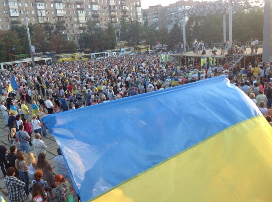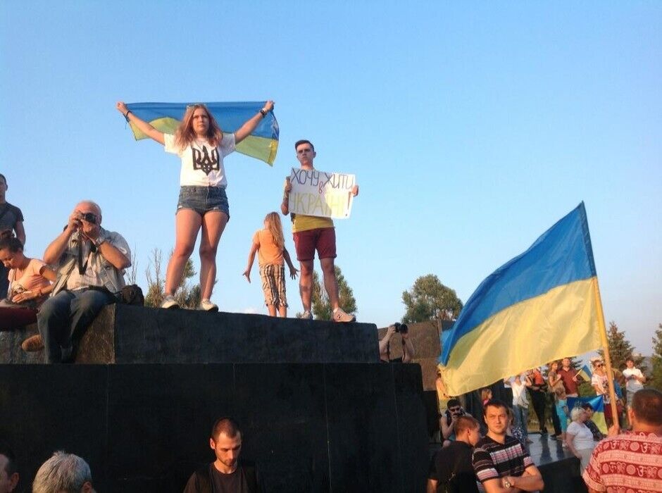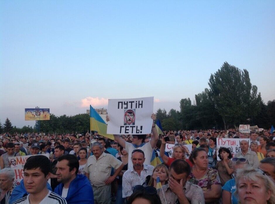"Путин, прочь!". На проукраинский митинг в Мариуполе собрались около 5 тыс. человек. Фоторепортаж
