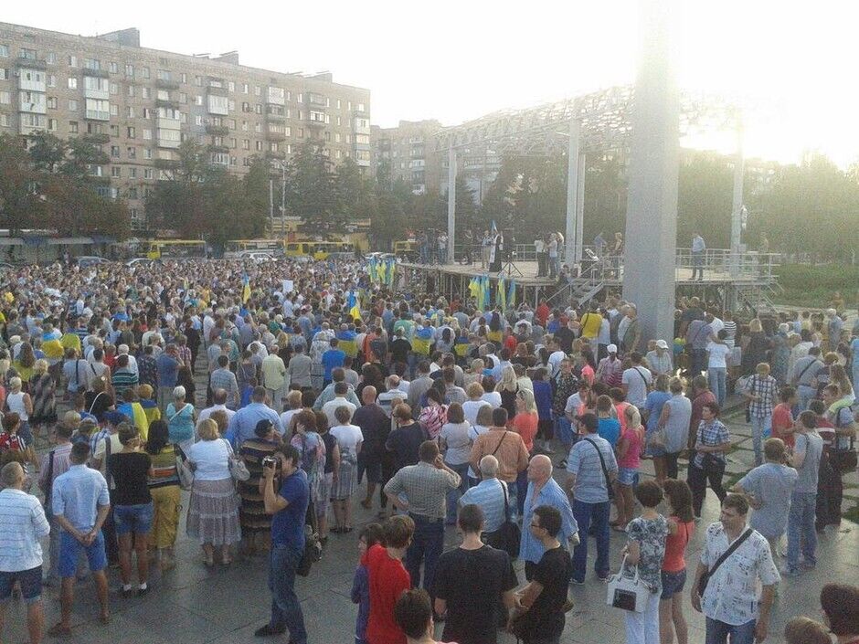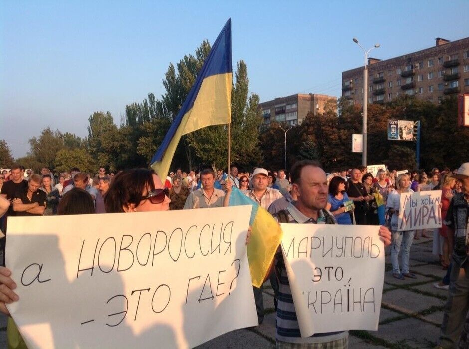 В четверг, 28 августа, в Мариуполе Донецкой области проходит митинг за единство Украины. Нардеп-ударовец Егор Фирсов сообщил в Twitter, что в нем участвуют около 5 тыс. человек. Активисты держат в руках флаги Украины, а также плакаты с надписями "Новороссия – это где?", "Хочу жить в Украине", "Путин, прочь!".