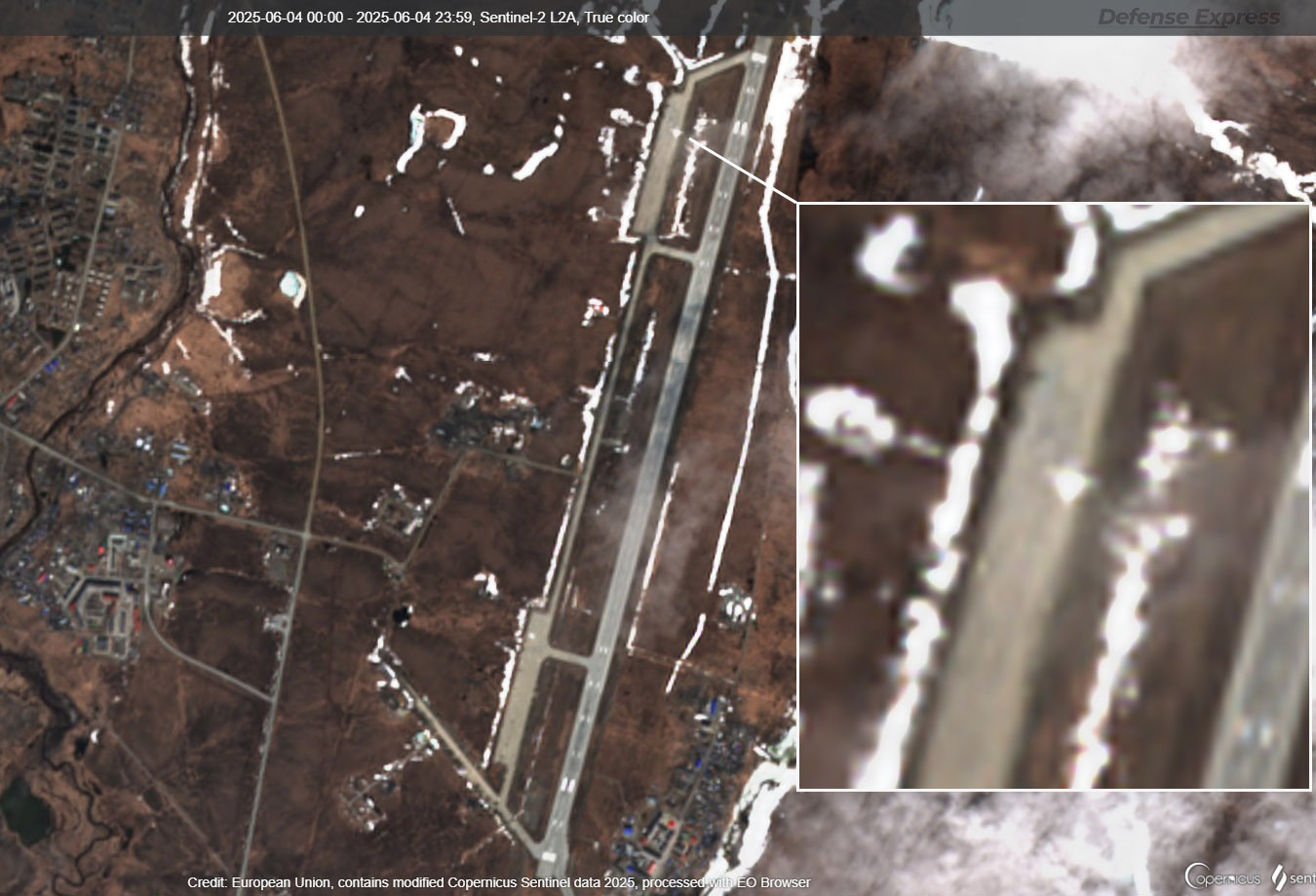 Отмечают, что еще 2 июня этого самолета не было на авиабазе, а ряд спутниковых снимков за последние несколько месяцев демонстрируют, что россияне не держали на ней свою стратегическую авиацию. Фиксировали лишь отдельные эпизоды, в частности в 2024 году в рамках учений так называемых ВКС РФ.