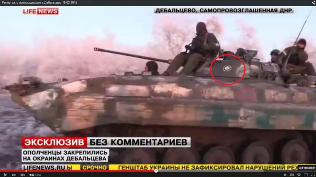 Российский телеканал LifeNews в своем репортаже из Дебальцево засветил бронетехнику, на которой четко видна тактическая маркировка 136-й бригады армии РФ из Дагестана.