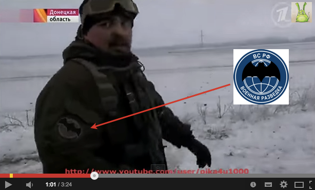 Еще один репортаж, теперь уже "Первого канала" из Углегорска. В кадре фигурирует человек с шевроном военной разведки РФ.