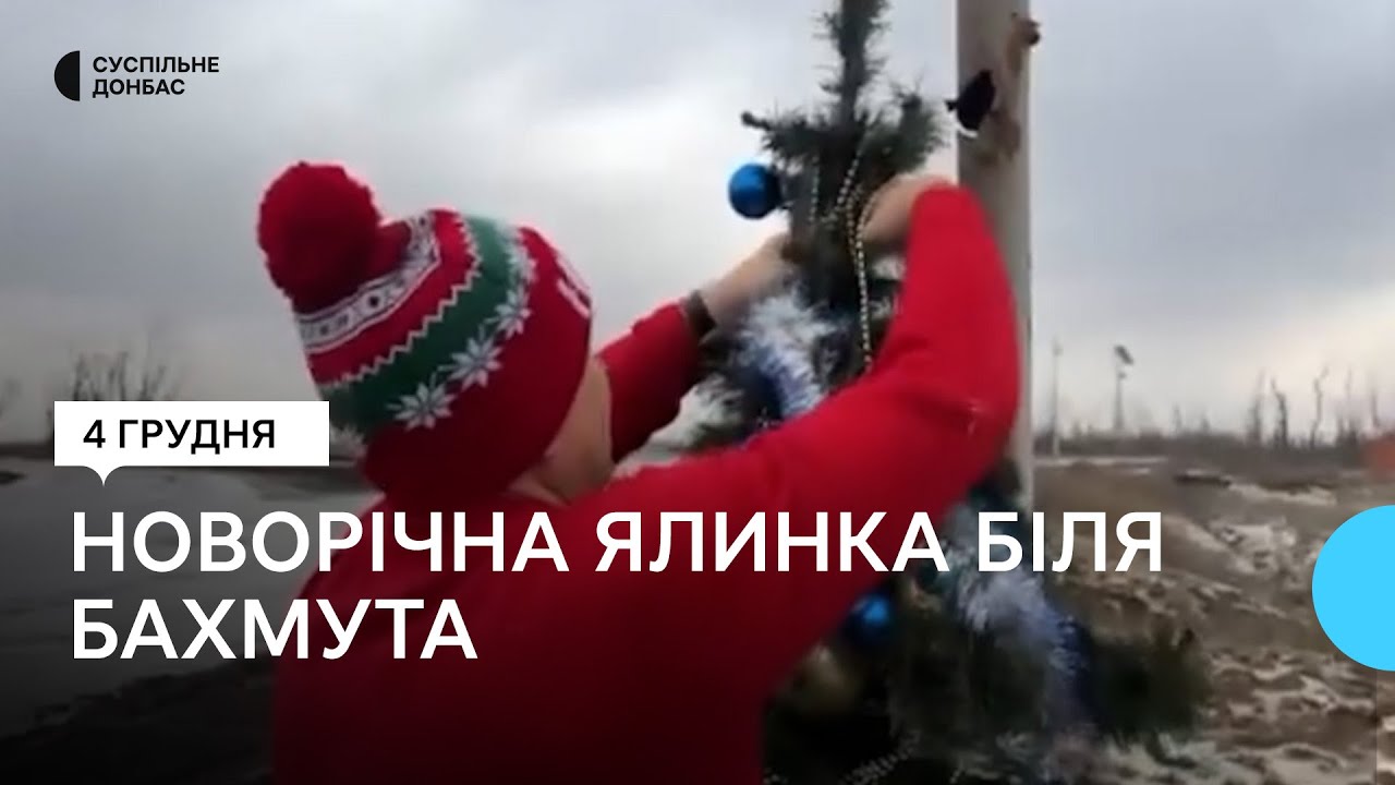 Волонтер рассказал, что поставил елку на трассе Часов Яр – Бахмут более недели назад.