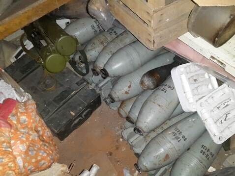 Тайник был оборудован в подвальном помещении покинутого частного дома. Правоохранители изъяли из него 11 гранатометов РПГ-22, 22 120-мм мины, десять 125-мм танковых снарядов, 12 гранат "РГД-5" и 70 выстрелов "ВОГ-252, а также пять пороховых зарядов к танковым снарядам.