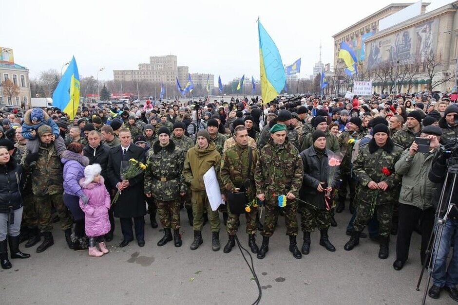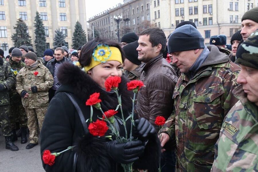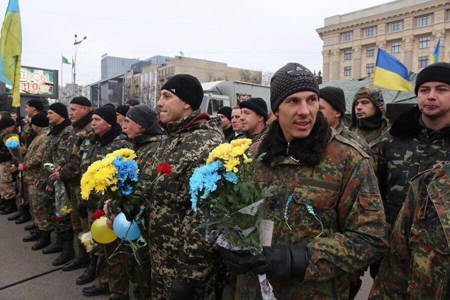 В среду, 19 ноября, в центре Харькова торжественно встретили бойцов 22-го батальона территориальной обороны Харьковской области, которые полгода выполняли боевые задачи в зоне проведения антитеррористической операции (АТО) на Донбассе. Харьковчане встретили военных аплодисментами, вручили им каравай и цветы. По словам комбата Сергея Горбенко, на востоке погибли два бойца 22-го батальона, еще 18 получили ранения и травмы.