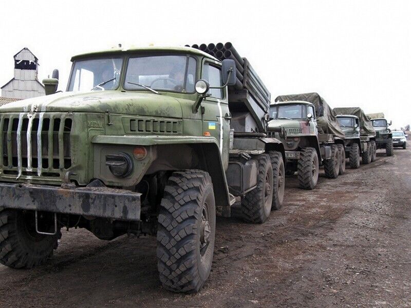 Ракетно-артиллерийские дивизионы ВСУ в Луганской области, которые имеют на вооружении реактивные системы залпового огня БМ-21, были отведены сегодня на предусмотренные Минскими соглашениями расстояния. Наблюдатели ОБСЕ, которые сопровождали колонну, указали на расстояние более 35 километров от линии соприкосновения сторон, сообщили в пресс-службе Министерства обороны.