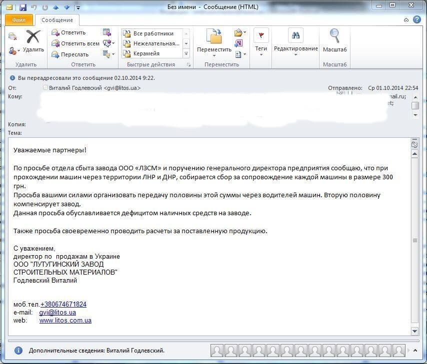 Луганский завод строительных материалов обратился к поставщикам с просьбой обеспечить выплату части сборов, которые требуют террористы "ДНР" и "ЛНР", пишет "ЛІГАБізнесІнформ".