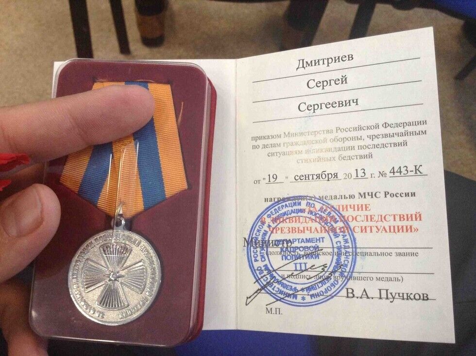 За спасательную операцию Дмитриева наградили медалью "За отличие в ликвидации последствий ЧС".