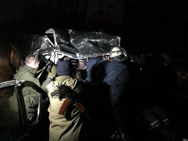 В Донецке автобус с боевиками врезался в маршрутку. Фоторепортаж