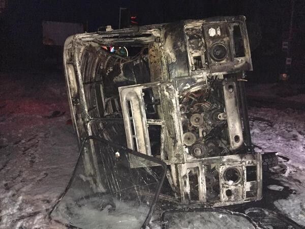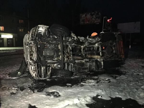 В Донецке на перекрестке Киевского и Партизанского проспектов микроавтобус, который перевозил, по одной версии, боевиков, по другой, – работников одного из металлургических предприятий, врезался в маршрутку, пишет издание 62.ua. Потом в один из микроавтобусов попал снаряд и начался пожар. Сообщается об одном или двух погибших и девяти раненых, в том числе пяти тяжелораненых.
