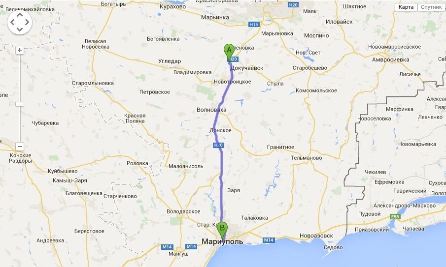 Расстояние между поселком Березовое и Мариуполем составляет около 80 км.