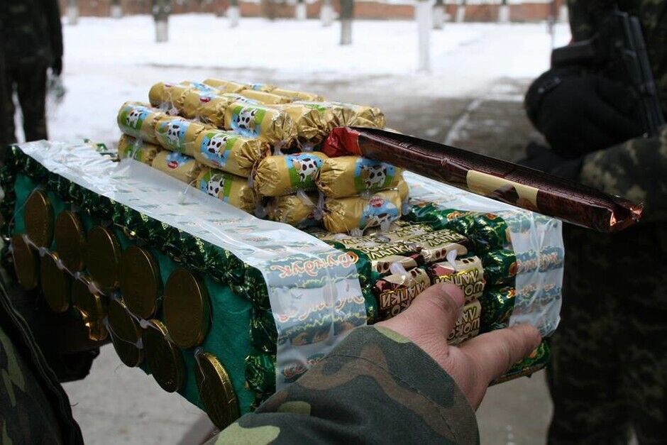 Третьеклассница из Кривого Рога передала воинам АТО танк из конфет. Фоторепортаж