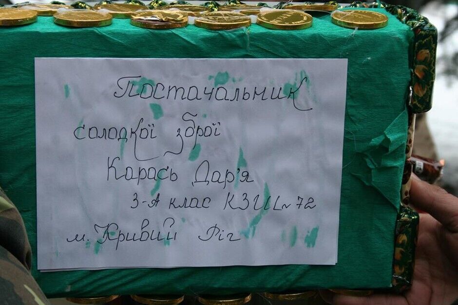 Дарья Карась, ученица 3-А класса школы №72 из Кривого Рога передала украинским военнослужащим в зоне антитеррористической операции танк из шоколадных конфет. Вместе с другими подарками для силовиков "сладкое оружие" на передовую доставили волонтеры.