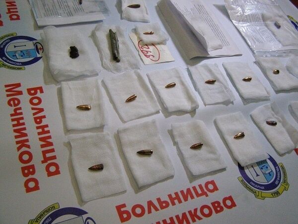 Медики собрали автоматные пули, тяжелые осколки от артиллерии и ракетной системы залпового огня "Град", части танковых снарядов, боеприпасов, а также запрещенных Минскими соглашениями 120-миллиметровых мин.