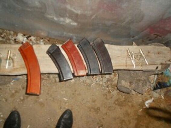 "Во время осмотра сотрудники милиции обнаружили и изъяли более 1,3 тыс. патронов к автомату Калашникова калибра 5,45 мм в металлическом ящике и пачках, магазины к автомату, четыре гранаты Ф-1 и одну гранату РГД-5", — говорится в сообщении.