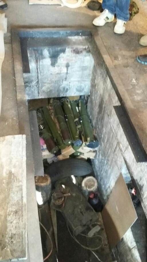 В тайнике находились 65 реактивных гранатометов, автомат Калашникова и большое количество боеприпасов.