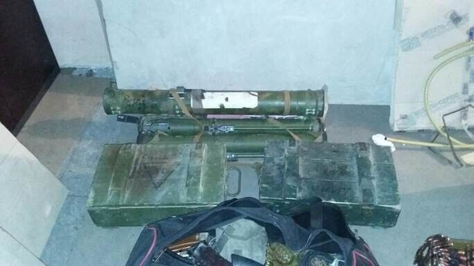 Во время обыска по месту проживания подозреваемого сотрудники СБУ изъяли гранатомет РПГ-26, большое количество патронов, восемь ручных гранат, две упаковки артиллеристского пороха и пять снарядов для зенитной установки.