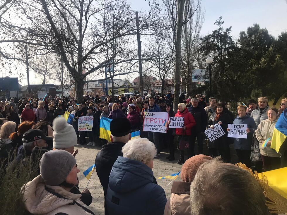 Митинг устроили на площади у здания городского совета. На нем выступили представители горсовета, активисты, обычные жители Голой Пристани.