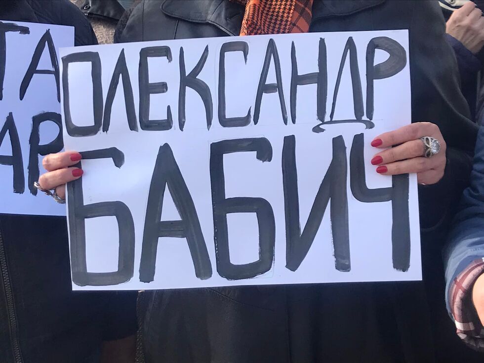 Каждый из ораторов говорил о том, что российские военные должны вернуть Бабича и других жителей общины, похищенных с начала вторжения России в Украину.