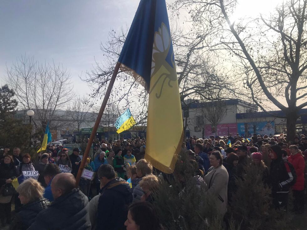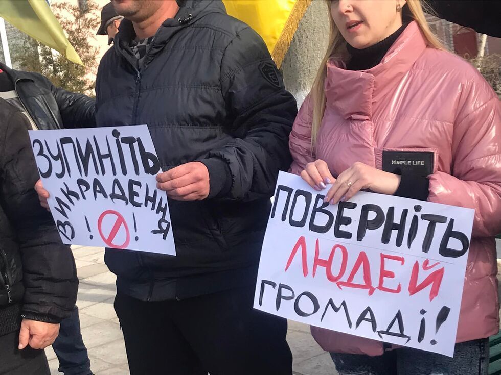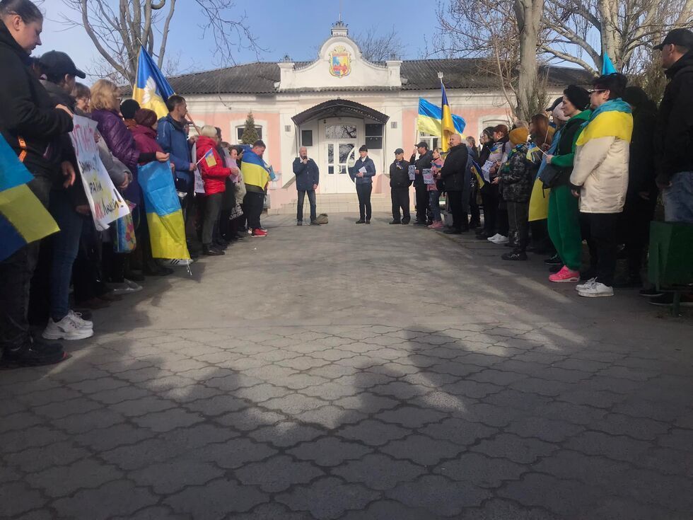 В городе Голая Пристань Херсонской области 31 марта местные жители вышли на мирный митинг с требованием к российским оккупантам вернуть городского голову Александра Бабича и других похищенных ими местных жителей. Об этом сообщает Общественное.