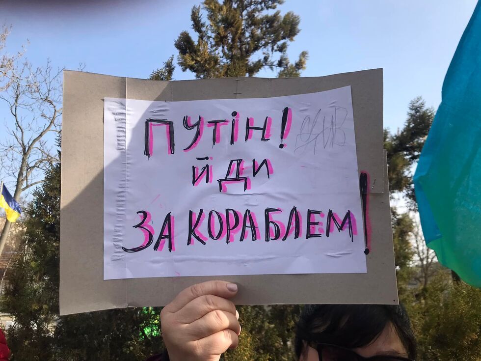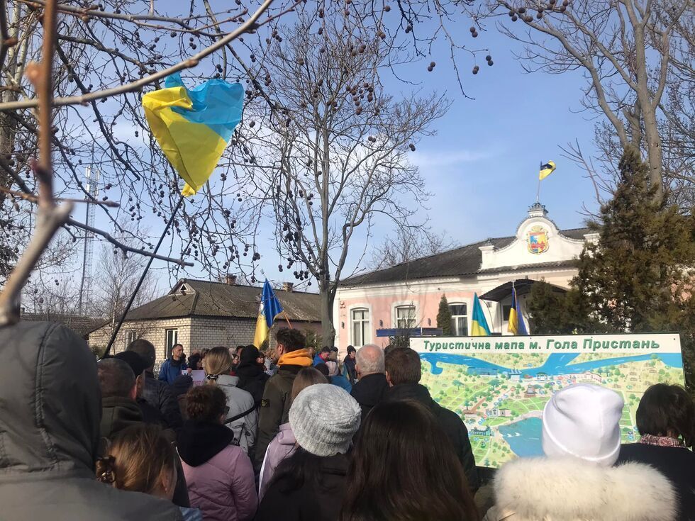 "Свободу мэру!", "Свободу пленным!", "Гола Пристань – это Украина!", "Херсонщина – это Украина!" – скандировали присутствовавшие на митинге. В конце митинга вместе спели гимн Украины и гимн Голой Пристани.