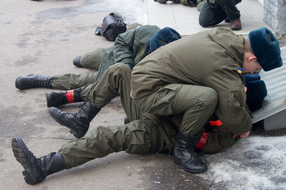 В Харькове в Национальной академии Нацгвардии активисты обучают курсантов навыкам бойца-спасателя. Фоторепортаж