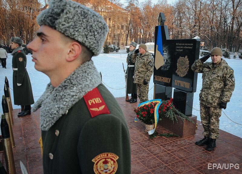В Киеве открыли мемориальную стеллу "Защитнику Отечества". Фоторепортаж