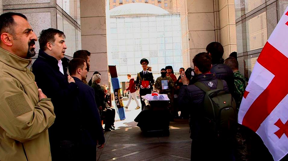 В церемонии прощания также принял участие экс-президент Грузии Михаил Саакашвили.