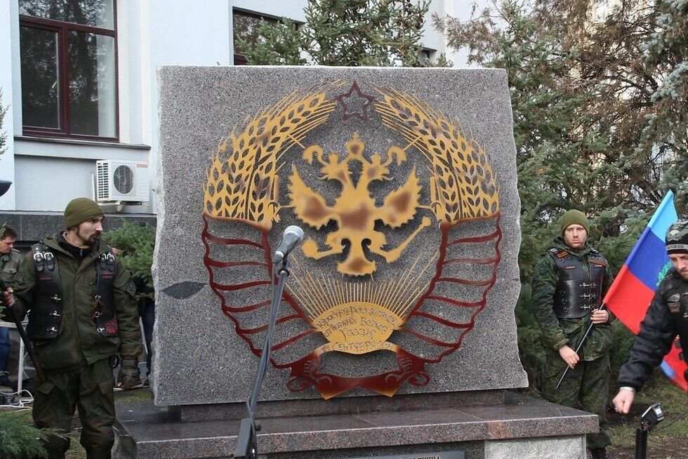 Установленный боевиками памятный знак символизирует "переплетение истории" России и Донбасса.
