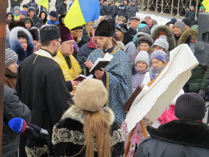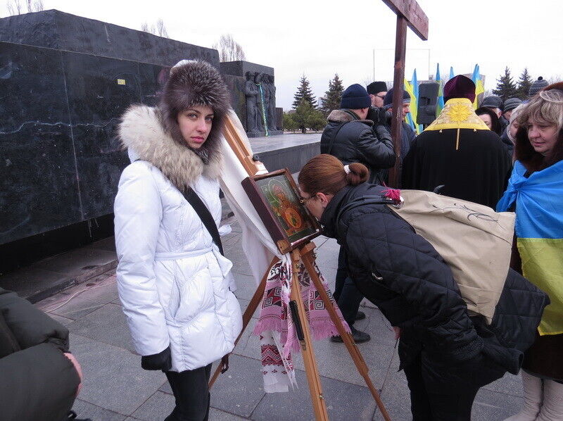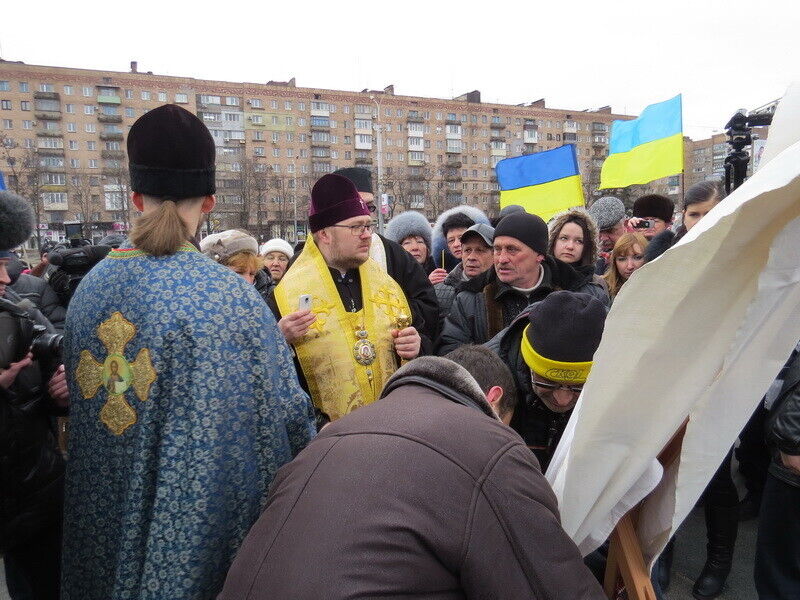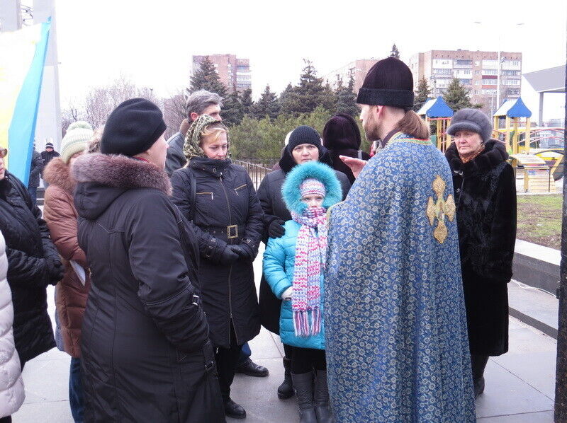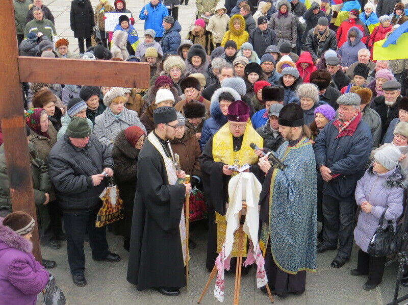 В воскресенье в 8.30 утра жители Мариуполя собрались на молебен в память всех погибших за время военных действий и за мир в Мариуполе и Украине. Как сообщает пресс-служба Мариупольского горсовета, молебен проходил перед мироточащей иконой Божьей Матери "Знамение" из прихода Великомученика и Целителя Пантелеймона (Украинской Православной Церкви Киевского Патриархата).