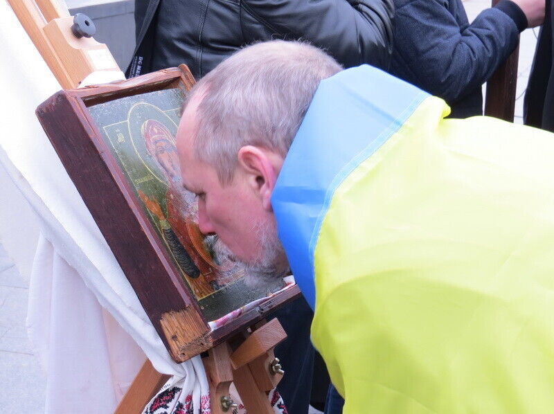 После молебна мариупольцы смогли приложиться к мироточащей иконе.
