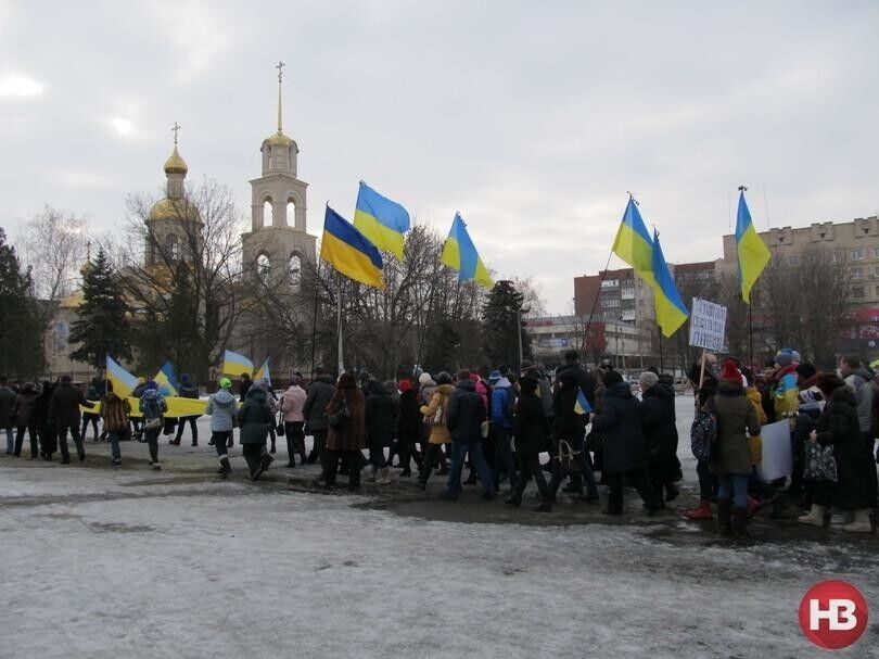 В Славянске провели Марш мира под лозунгом "Путина на плаху за нашу Волноваху". Фоторопертаж
