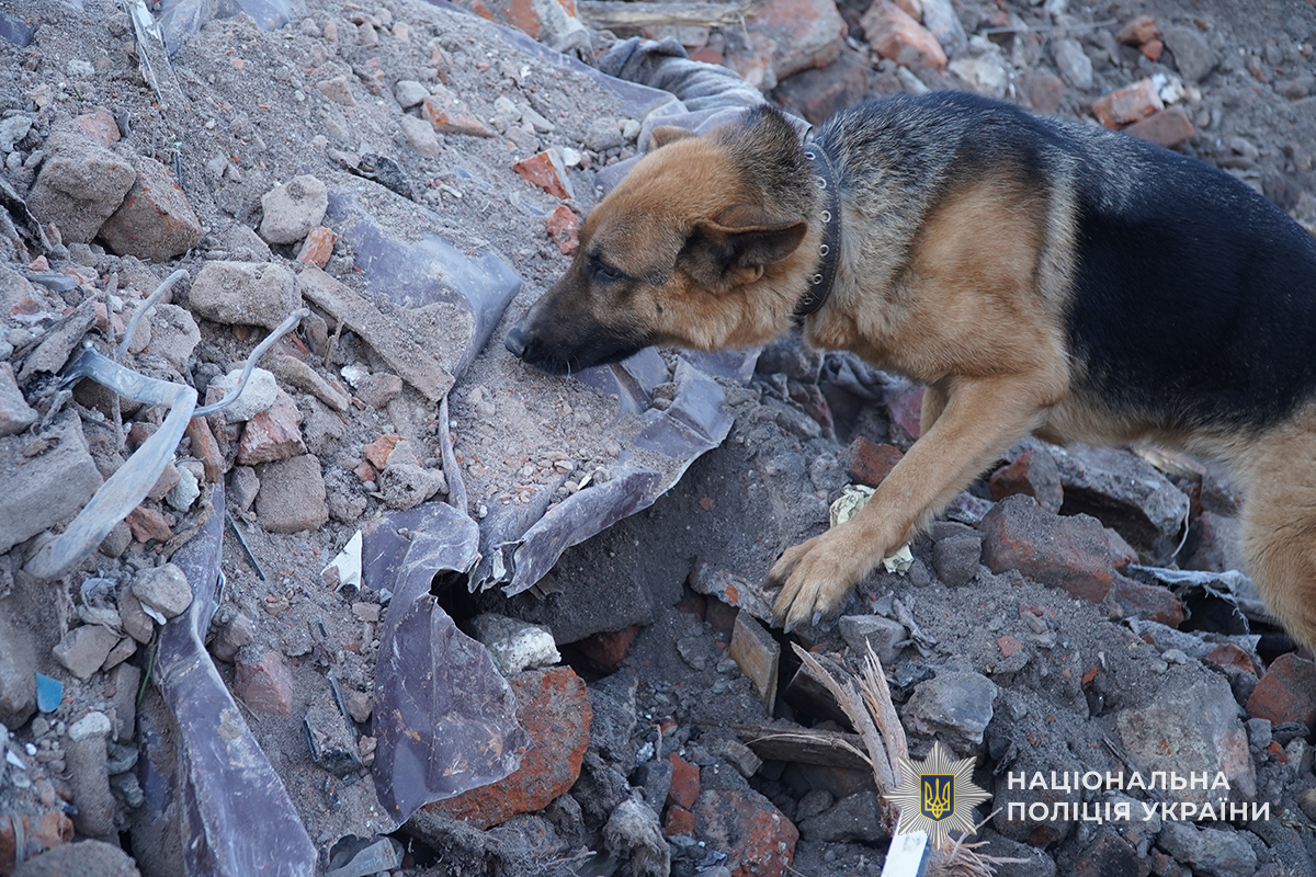 "В этом случае мы здесь ищем останки тел погибших и, возможно, их личные вещи, которые могли бы здесь находиться в завалах. Она ищет вещи, которые, возможно, были пропитаны телесными жидкостями", – рассказал инспектор-кинолог Владимир Антонюк.