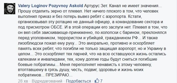 В то же время замкомандира 95-й аэромобильной бригады Валерий Логинов (позывной Аскольд) считает, что поведение украинского военного нельзя оправдать.