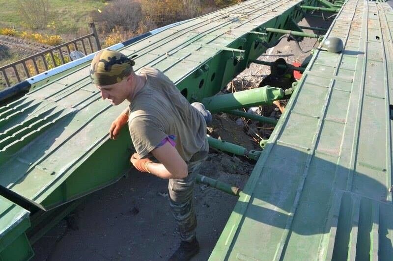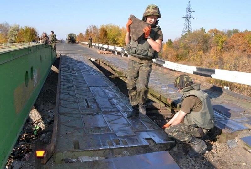 Министерство обороны Украины опубликовало в Facebook кадры работы военных инженеров в зоне АТО. Как говорится в сообщении силовиков, восстановленный украинскими силовиками 20-метровый мост был ранее подорван террористами.
