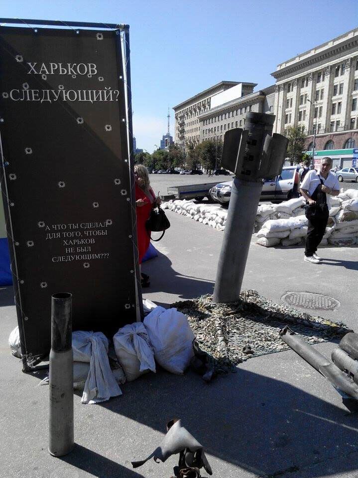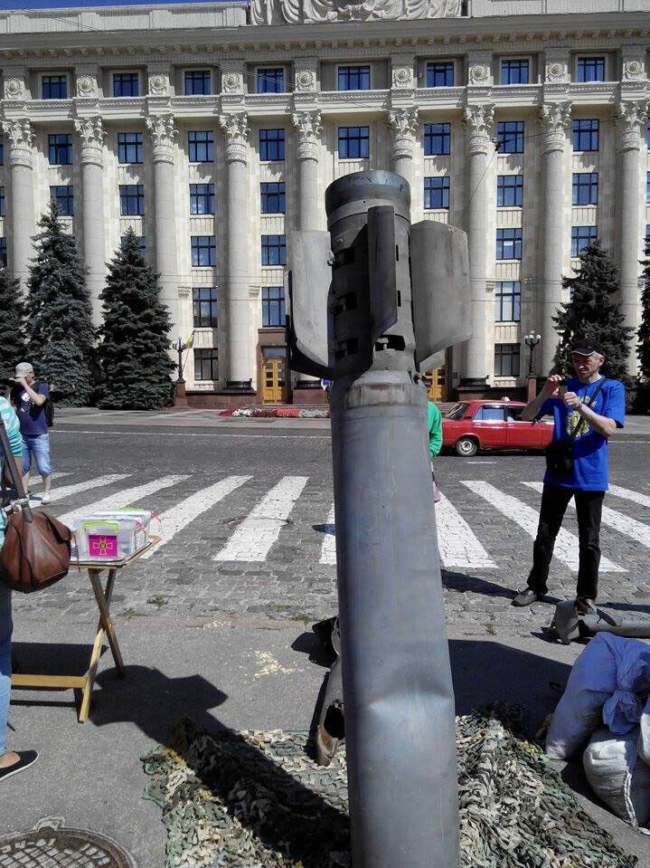 Активисты волонтерской сети "Свободные Люди" установили в центре Харькова, напротив здания областной государственной администрации на площади Свободы снаряд от установки залпового огня "Смерч", которым боевики обстреливают украинские позиции. Цель акции — напомнить харьковчанам, что война продолжается, сообщило "Главное".