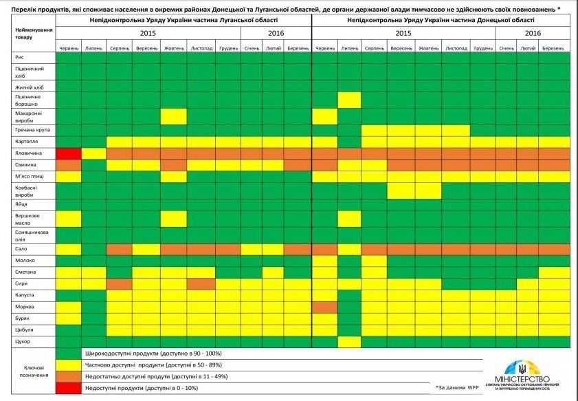 В министерстве отметили, что несмотря на многочисленные сообщения представителей ОРДЛО о высоком уровне жизни местного населения, Всемирная продовольственная программа констатирует проблемы, связанные с обеспечением полноценного питания.