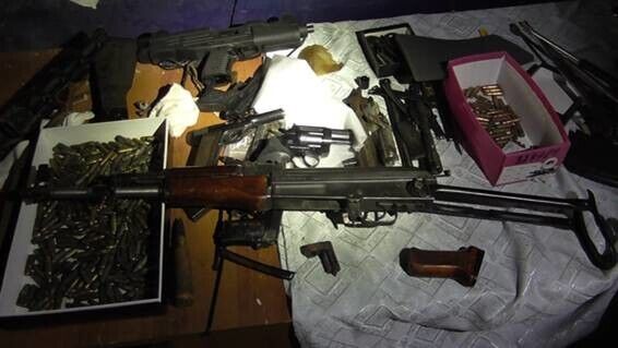 4 ноября сотрудники Запорожского УБОП совместно с работниками уголовного блока Запорожской и Одесской области одновременно провели 56 обысков на территории города Киева, а также Запорожской, Одесской, Херсонской, Харьковской, Днепропетровской и Киевской областей. Об этом сообщает пресс-служба МВД. В результате обысков правоохранители изъяли пять гранатометов, четыре пулемета Дегтярева, 15 автоматов Калашникова, пистолет-пулемет SZ-26, 15 винтовок Мосина, обрез охотничьего ружья, пистолет Glock, пистолет Beretta, пистолет Маузер, пистолет ТТ, три пистолета Макарова, пистолет Зораки, револьвер типа Наган калибра 7,62 мм, револьвер Smith & Wesson 38 калибра и 124 гранаты (РГД, Ф-12, Ф-1 и РГО).
