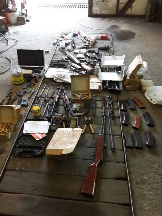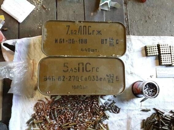 Кроме того, изъята противотанковая мина, 2 кг тротила, 2 кг гексогена, 28 артиллерийских снарядов, 23 крупнокалиберных снаряда, 3,4 тысячи патронов к разному оружию, электродетонаторы для тротиловых шашек, запалы к гранатам, порох, глушители, снайперские прицелы и др. Также правоохранители изъяли более килограмма марихуаны, 13,5 тыс. грн, $2700 и €320.