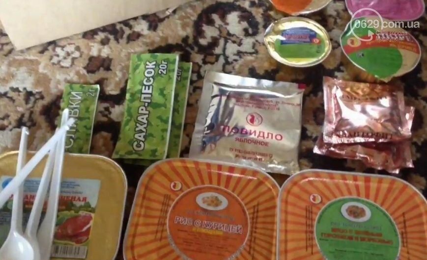 Во время посещения населенного пункта в руки жителей Мариуполя попал набор продуктов питания, изготовленный московской компанией Военторг, который не предназначен для продажи.