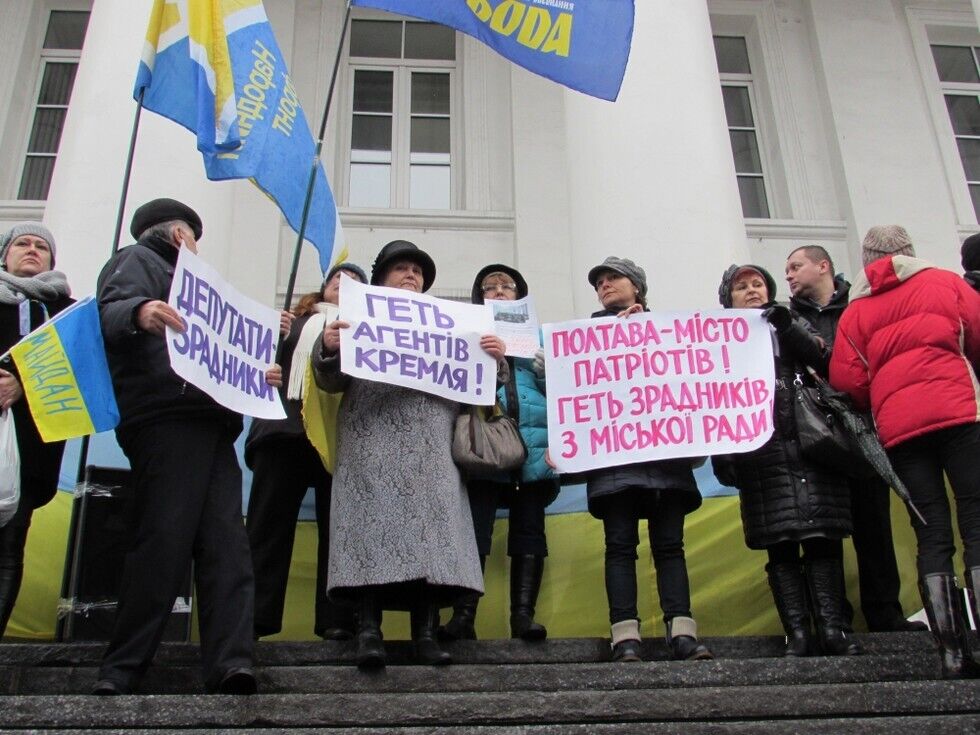 Жители Полтавы пикетируют горсовет с требованием признать Россию агрессором. Фоторепортаж