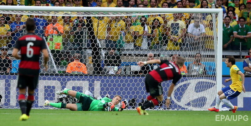 Полуфинальный матч между сборными Бразилии и Германии долится только около получаса, однако немцы уже практически обеспечили себе победу, ведь счет на табло - 5:0