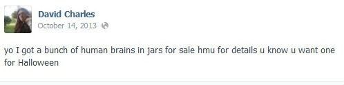 Кроме того, Чарльз предлагал купить мозги и в соцсетях, к примеру, на Хэллоуин.