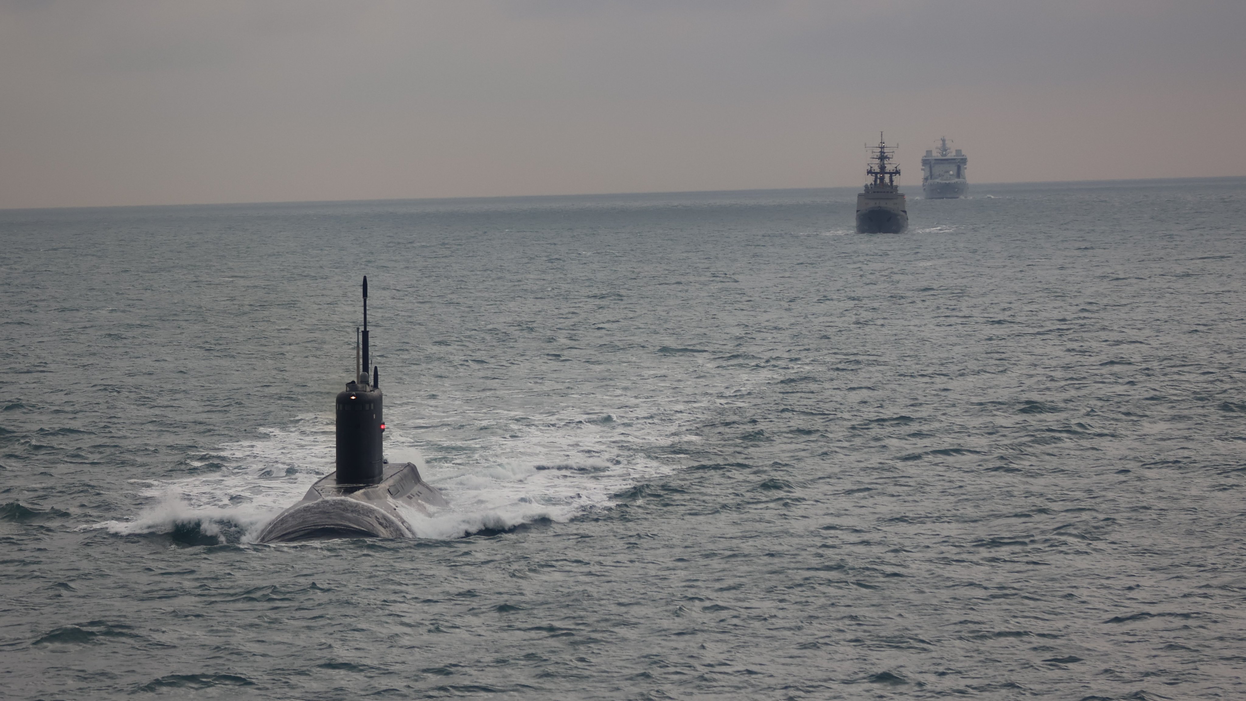 Сообщается, что британское вспомогательное судно Tidesurge со специализированным вертолетом Merlin проследили за прохождением российской подлодки "Краснодар" и буксира "Алтай" через пролив Ла-Манш в западном направлении.