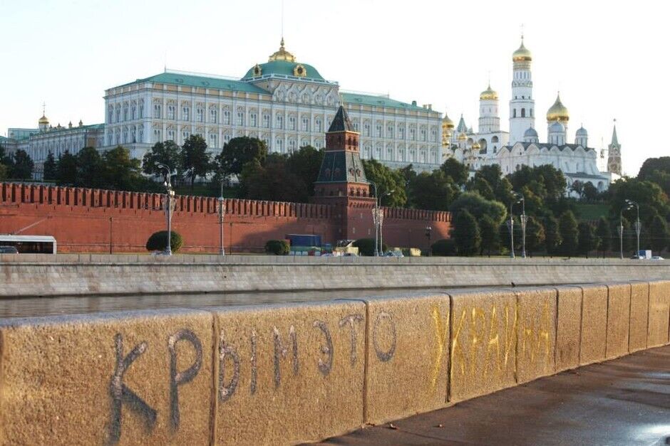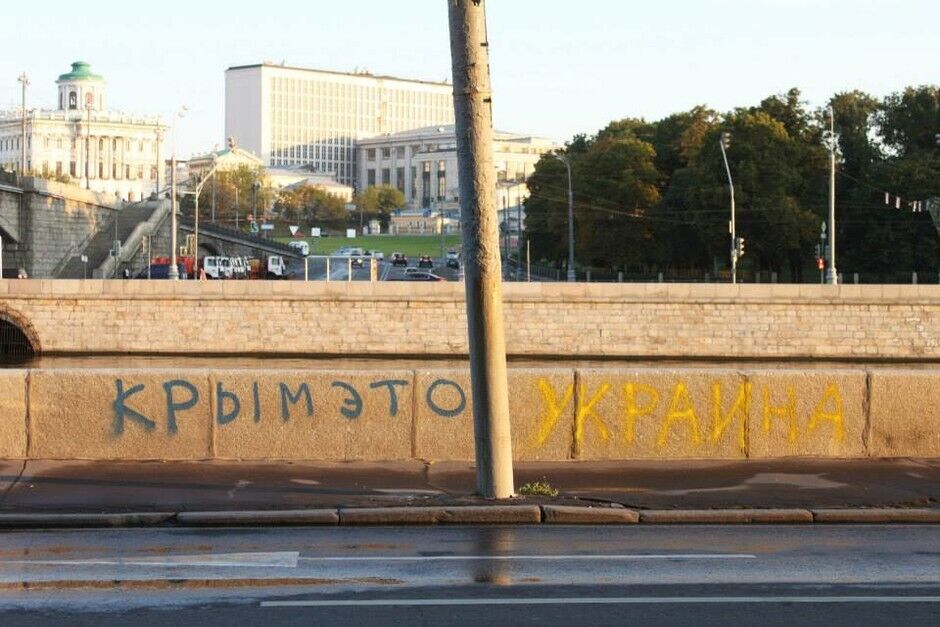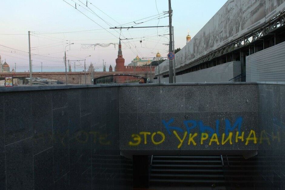 Центр Москвы расписали сине-желтым "Крым – это Украина"