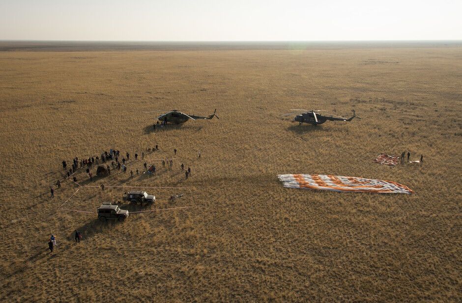 Экипаж Международной космической станции успешно приземлился в Казахстане. Фоторепортаж